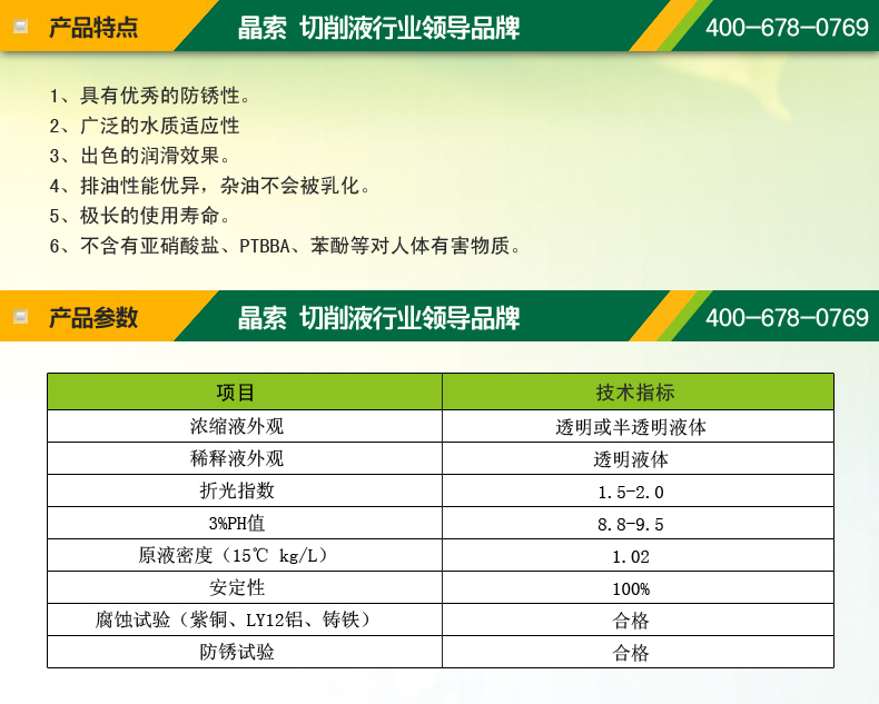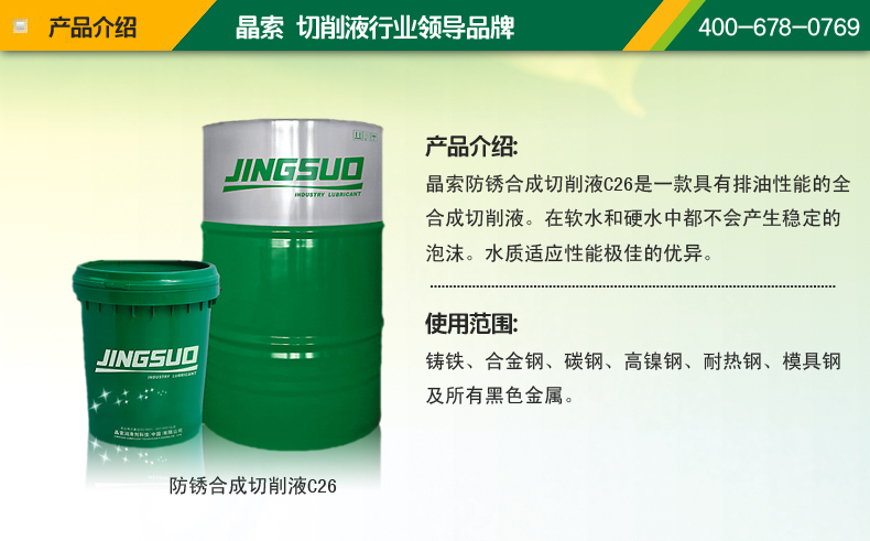 • 晶索防銹合成切削液是一款具有排油性能的全合成切削液。在軟水和硬水中都不會產生穩定的泡沫。水質適應性能極佳的優異。