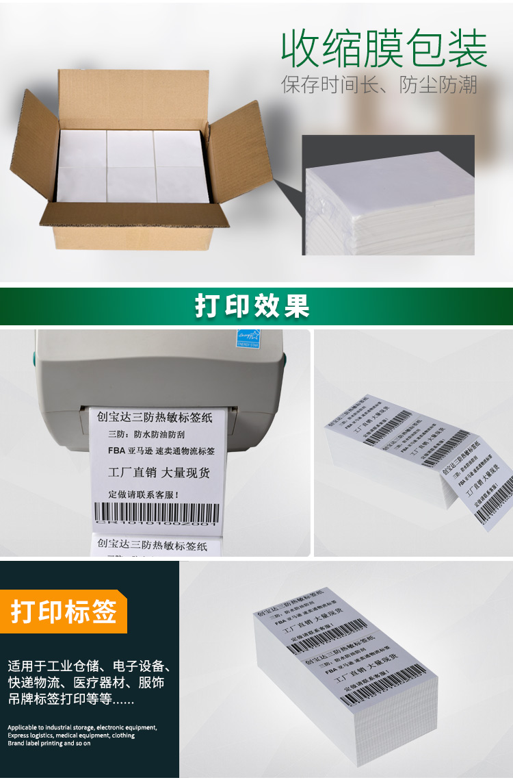 適合不同氣候地區(qū)使用,適用于亞馬遜FBA、郵政國際物流標(biāo)簽、郵政包裹、EBAY、速賣通、遞四方、EUB標(biāo)簽紙、電商標(biāo)簽,五金塑膠等