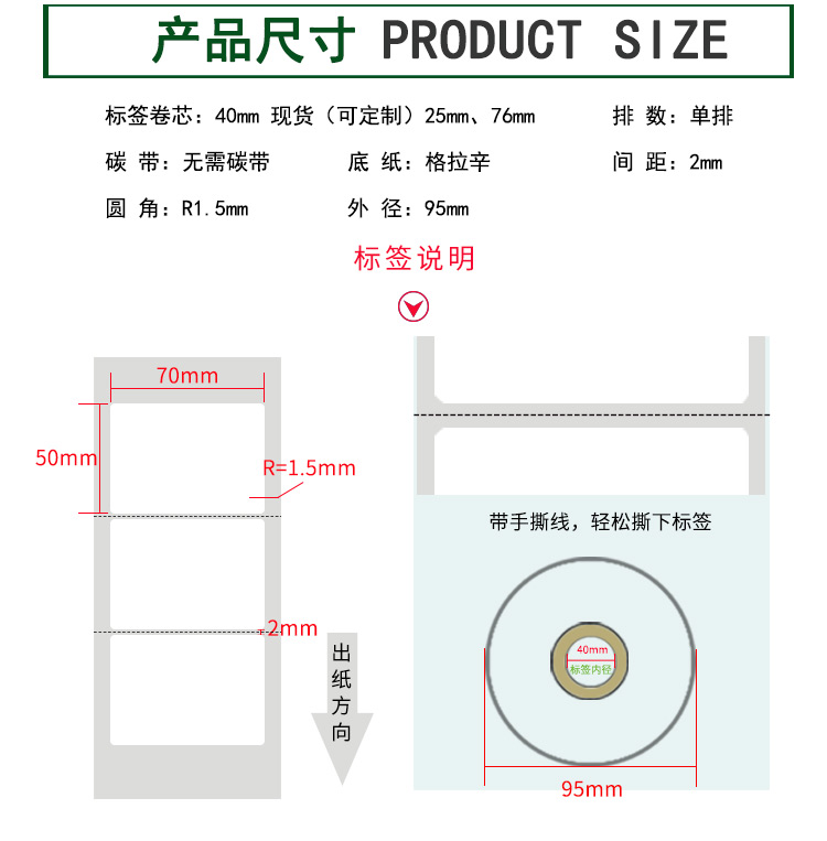 【標簽間距】2mm、圓角R=1MM、卷芯寬度:40mm
