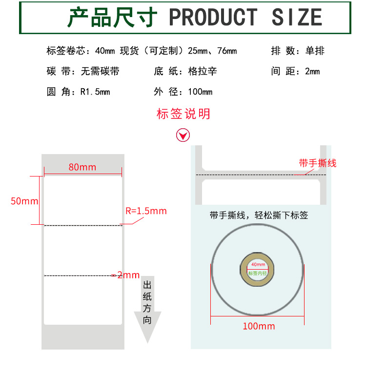 【標簽間距】2mm、圓角R=1MM、卷芯寬度:40mm