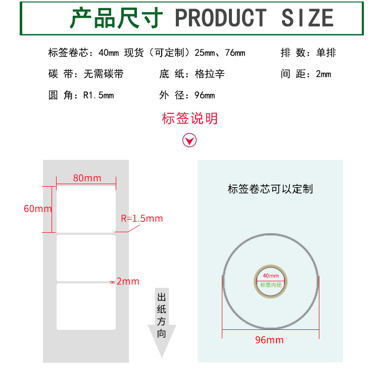 【標簽間距】2mm、圓角R=1MM、卷芯寬度:40mm