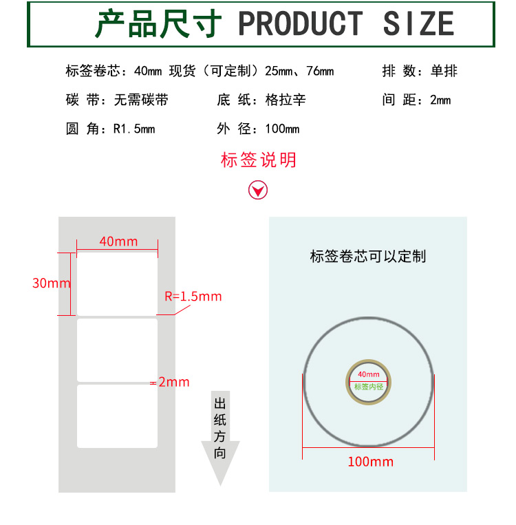 【標(biāo)簽間距】2mm、圓角R=1MM、卷芯寬度:40mm