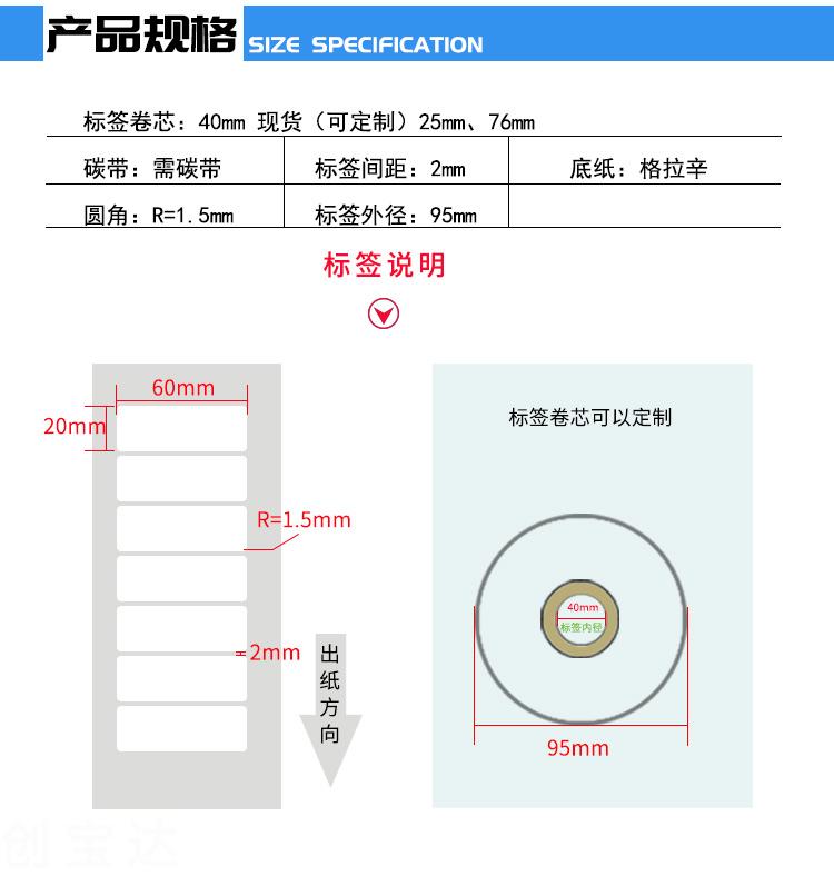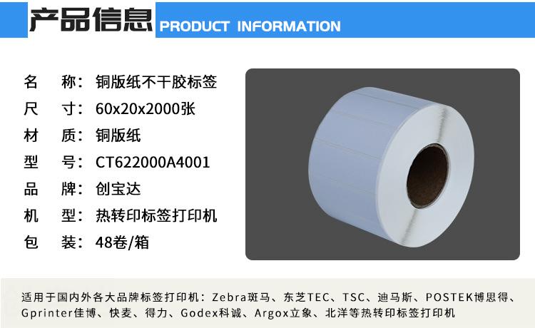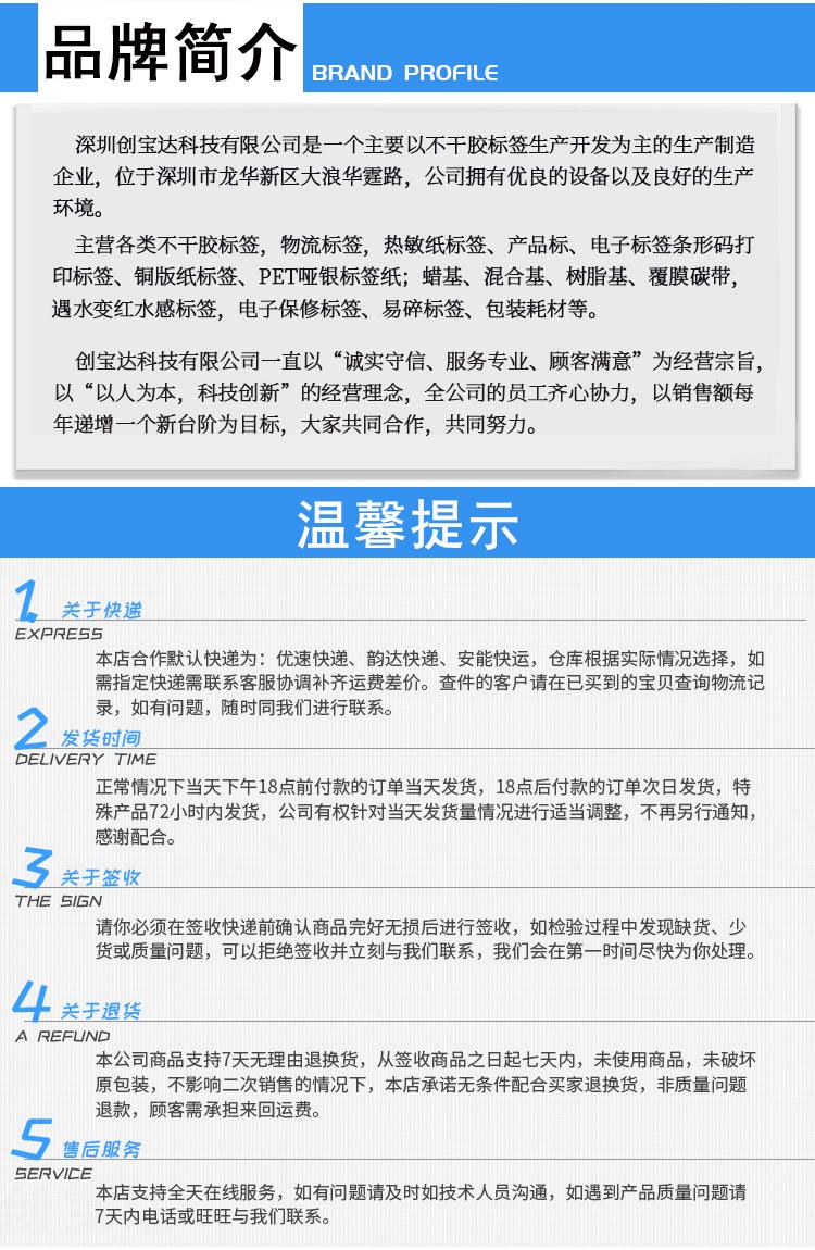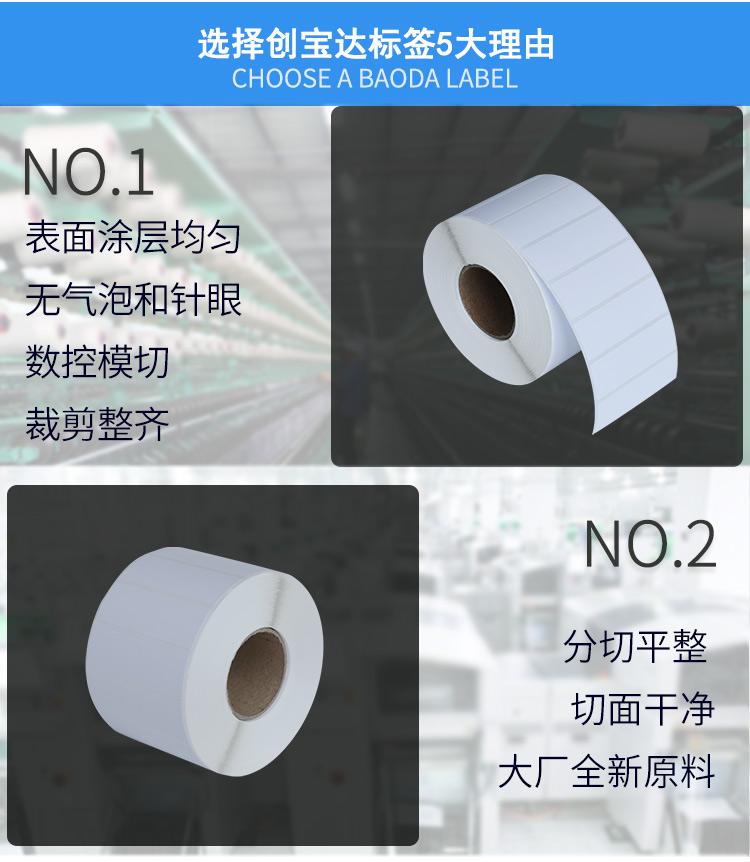 適合不同氣候地區使用,適用電子電器、五金塑膠、服裝、醫藥、日化、食品、商超、倉儲物流、資產管理、條碼標識、外箱貼紙等長期保存的產品標簽及外箱標簽同時也可以用于長時間保存(配合碳帶)的亞馬遜、郵政國際、物流標簽、郵政包裹、EBAY、速賣通、遞四方、出口EUB標簽、出口電商等標簽