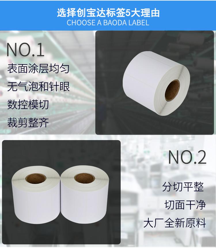 適合不同氣候地區使用,適用電子電器、五金塑膠、服裝、醫藥、日化、食品、商超、倉儲物流、資產管理、條碼標識、外箱貼紙等長期保存的產品標簽及外箱標簽同時也可以用于長時間保存(配合碳帶)的亞馬遜、郵政國際、物流標簽、郵政包裹、EBAY、速賣通、遞四方、出口EUB標簽、出口電商等標簽