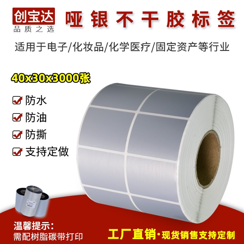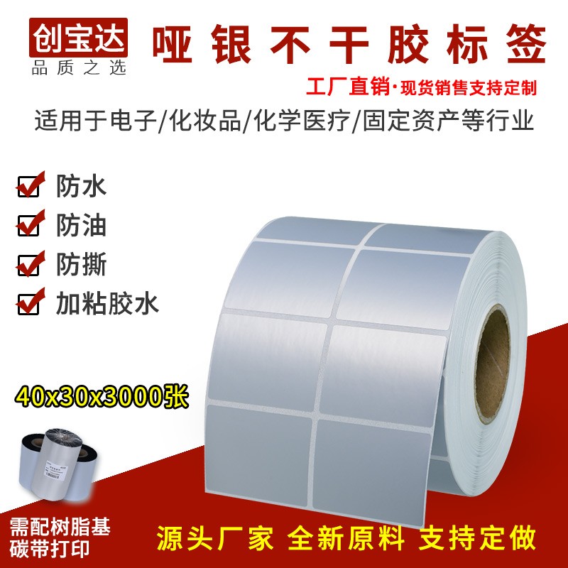 啞銀不干膠標簽,具有很好的耐侯性,效果十分清晰,抗刮能力強,撕不爛。防水防腐蝕,PET材質,穩定性高
